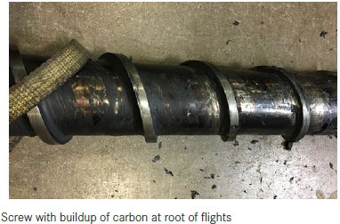 Mrtvé kouty, místa se stagnací i zadírání a tvorba špon nejčastěji pochází z opotřebení šneku a zpětného ventilu na vstřikovacím agregátu stroje.