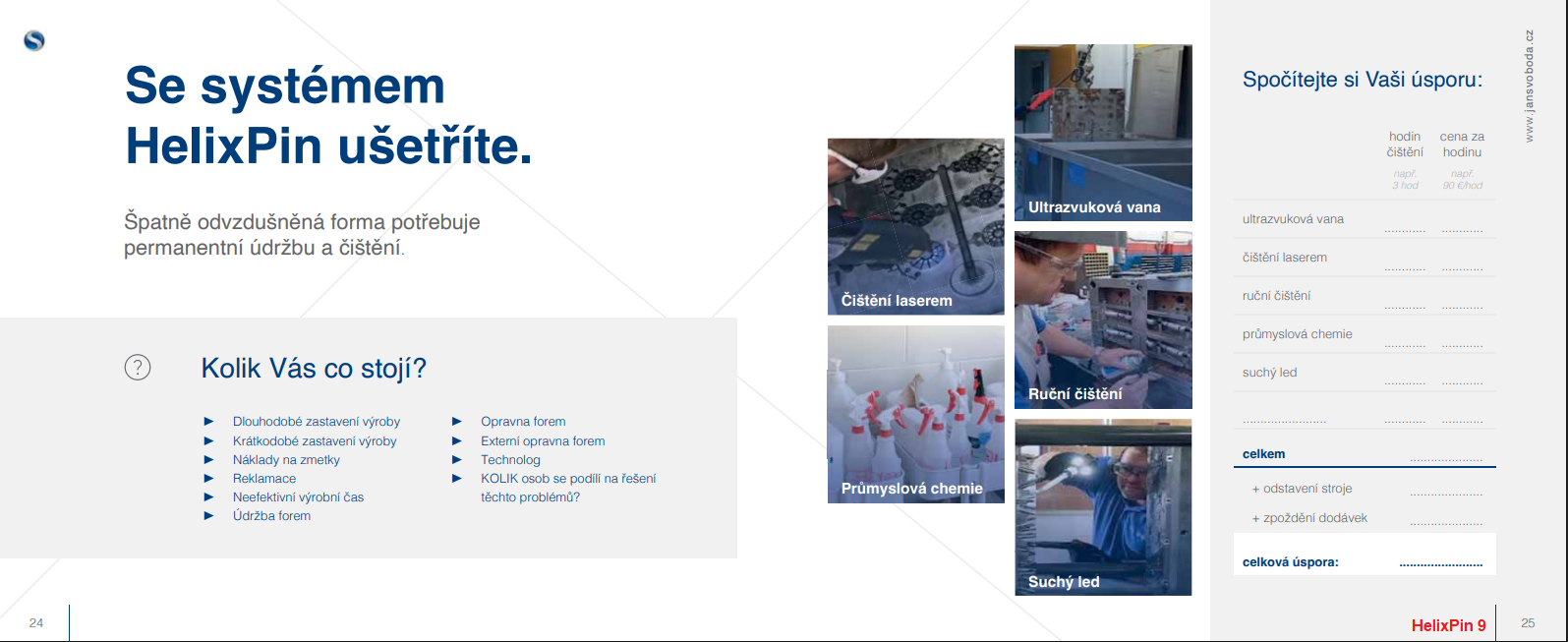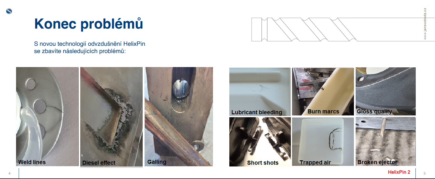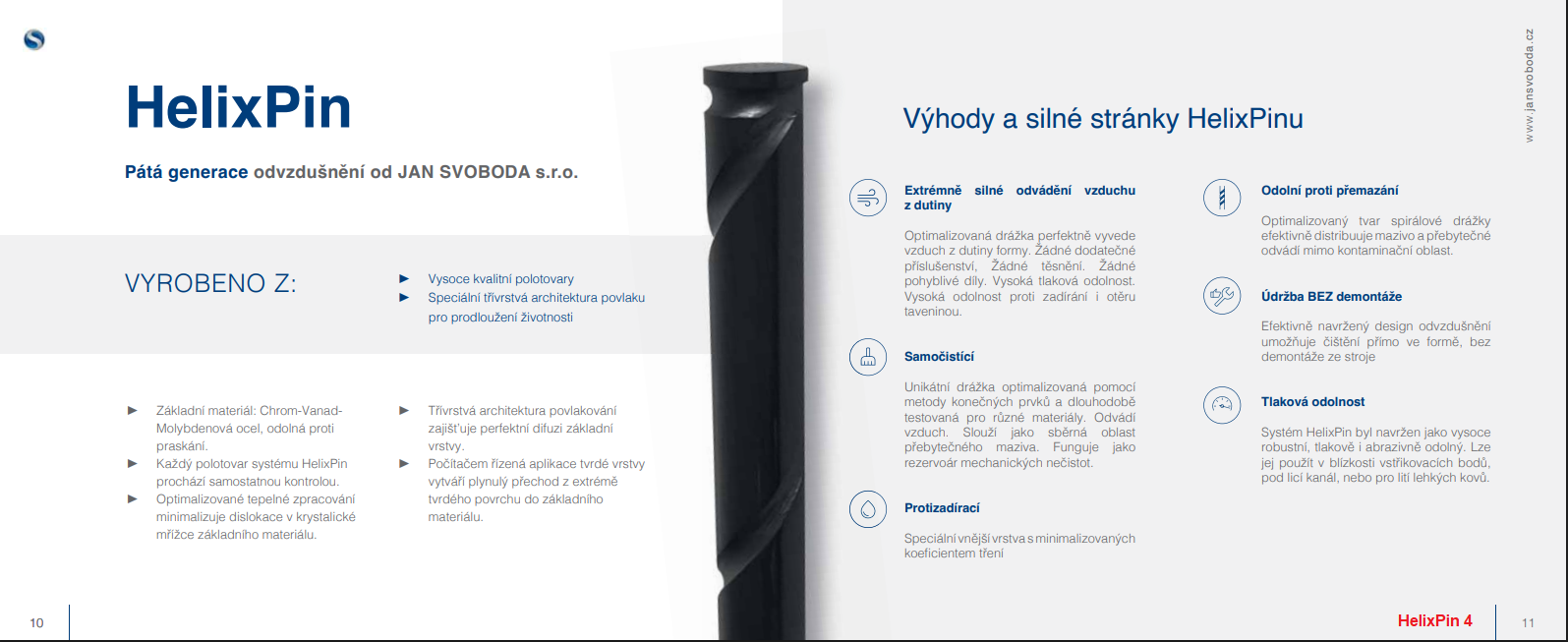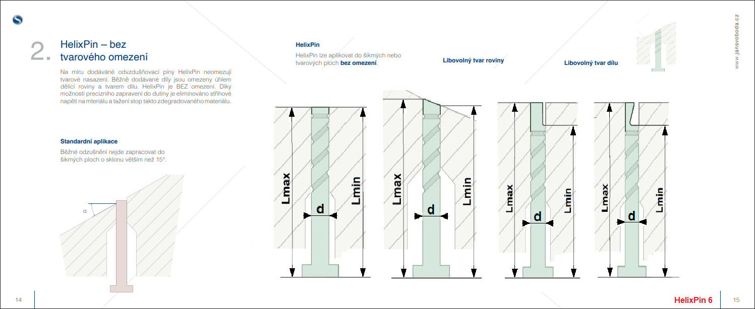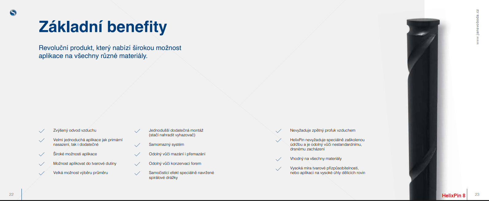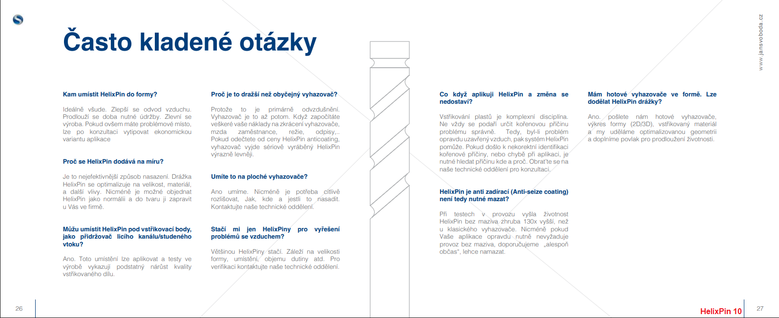 Každý konvenční kulatý vyhazovač lze nahradit vyhazovačem HelixPin a jednou pro vždy tím vyřešit celý komplex problémů pocházející z nedostatečného odvzdušnění.