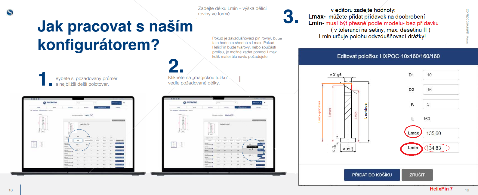 ALE !!! Rozměr Lmin musíte zadat přesně jak je ve formě, nebo modelu. L min nikdy neodhadujte a nezaokrouhlujte do plusu, protože od něj se odvíjí poloha drážek .