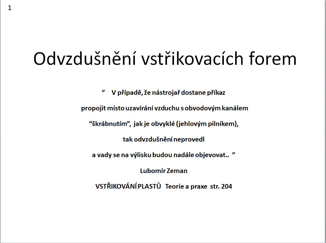 zde je ukázka stručné prezentace o odvzdušnění forem pro konferenci Plasty