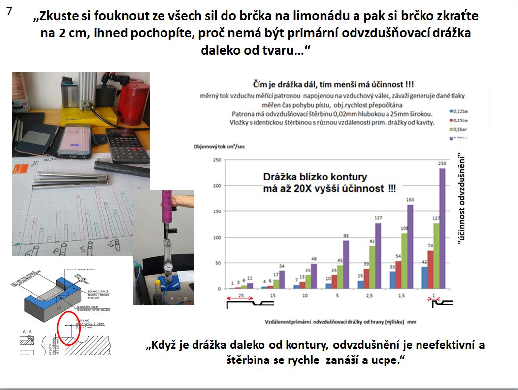 7, Tohle je docela důležitý pochopit : Zkuste si fouknout ze všech sil do brčka na limonádu a pak si brčko zkraťte na 2 cm , ihned pochopíte, proč nemá být primární odvzdušňovací drážka daleko od tvaru…