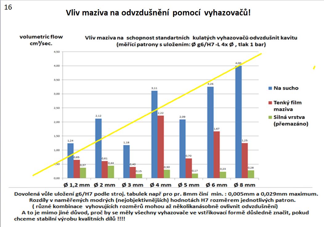 V grafu jsou i hodnoty naměřené pro namazání vyhazovačů tenkým filmem, nebo silnou vrstvou maziva.