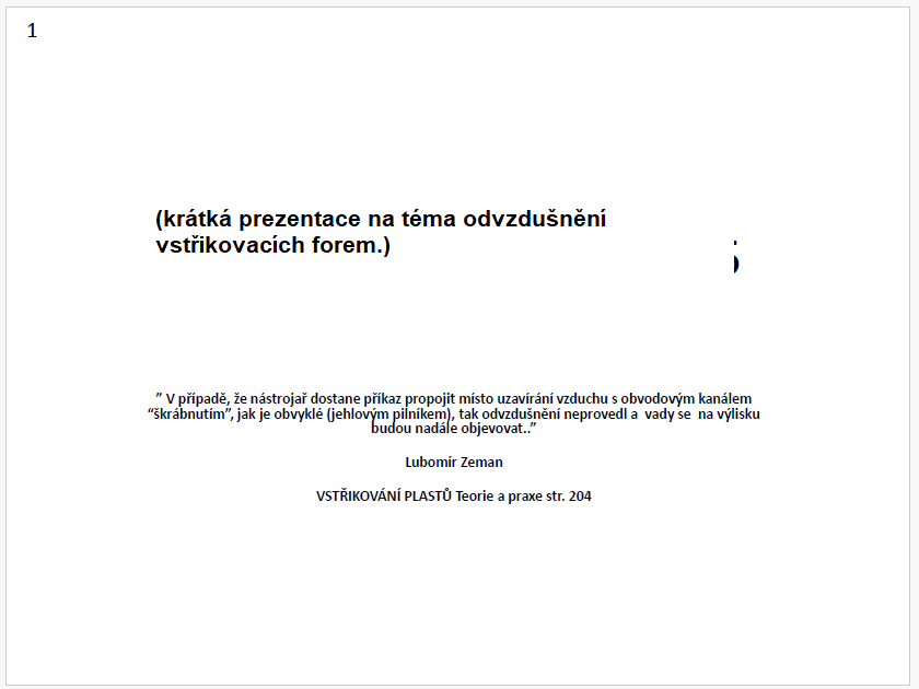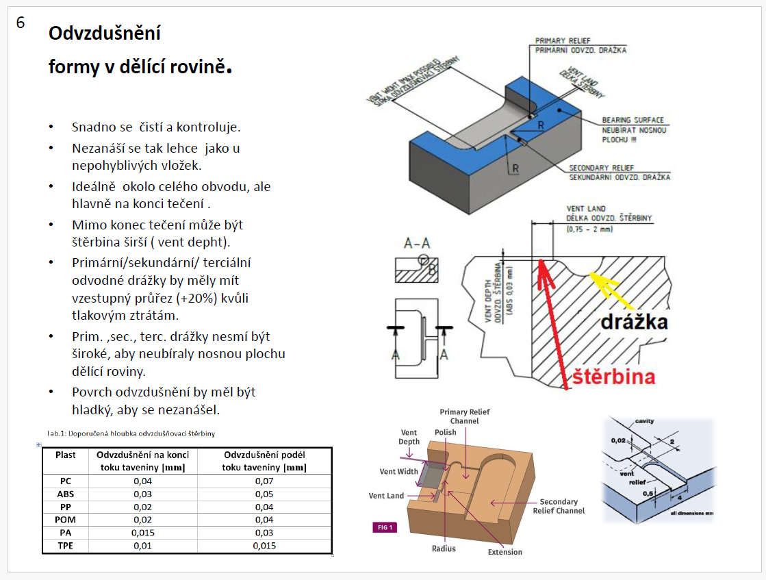 zde je ukázka stručné prezentace o odvzdušnění forem pro konferenci Plasty