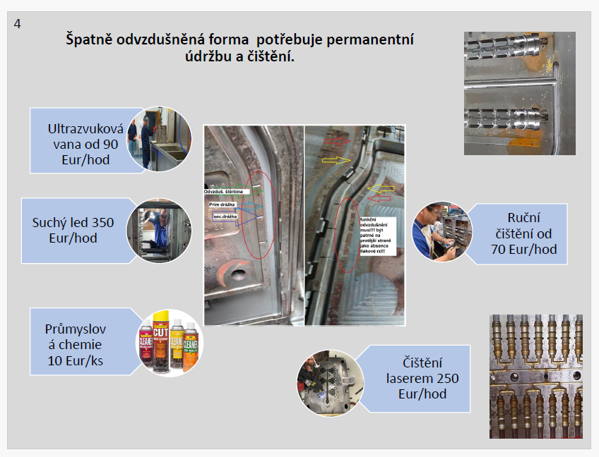 Špatně odvzdušněná forma se rychle zanáší a to vyžaduje kratší intervaly pravidelné údržby.