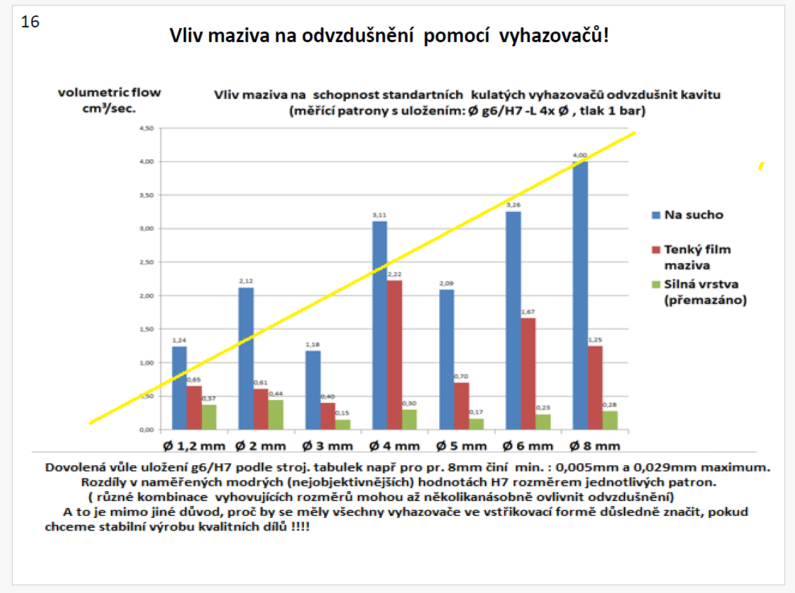 V grafu jsou i hodnoty naměřené pro namazání vyhazovačů tenkým filmem, nebo silnou vrstvou maziva.
