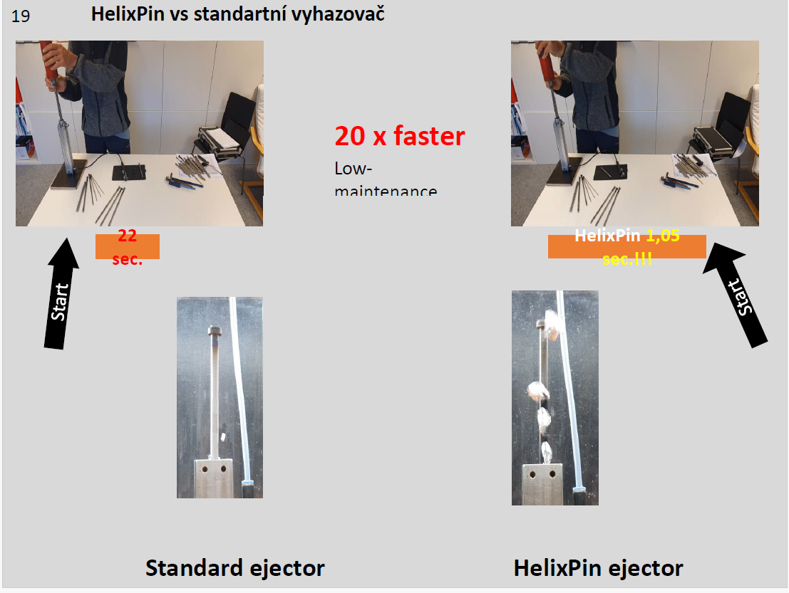 standartní velmi účinný způsob odvzdušnění, který by se ale měl uplatnit ještě ve fázi, kdy formu vymýšlí a ladí konstruktér je použití vyhazovačů v místě uzavírání vzduchu.
